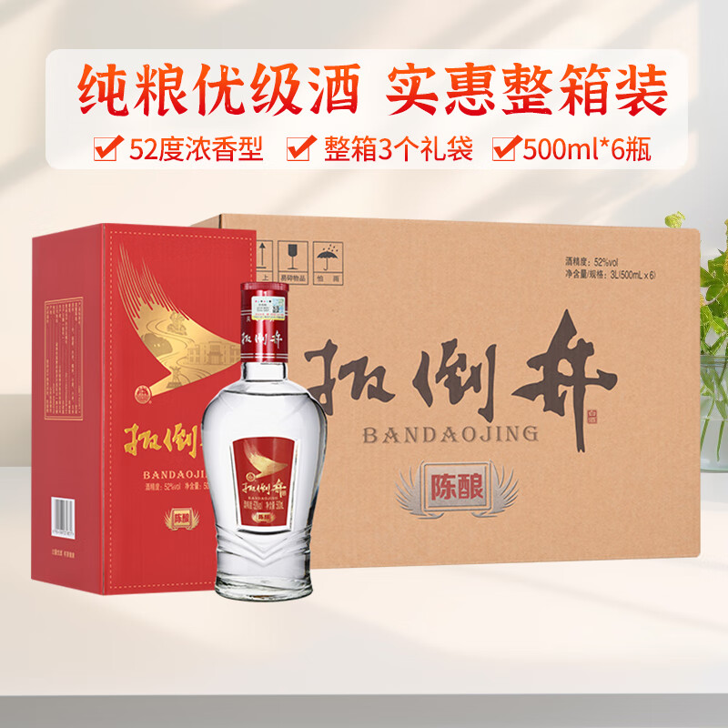 扳倒井陳釀 濃香型白酒52度500ml*6瓶整箱純糧釀造送禮品袋 自飲送禮