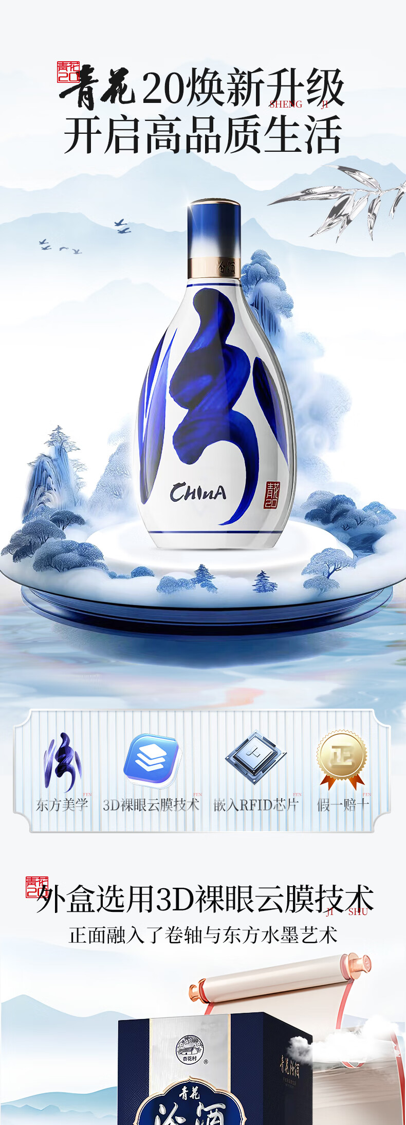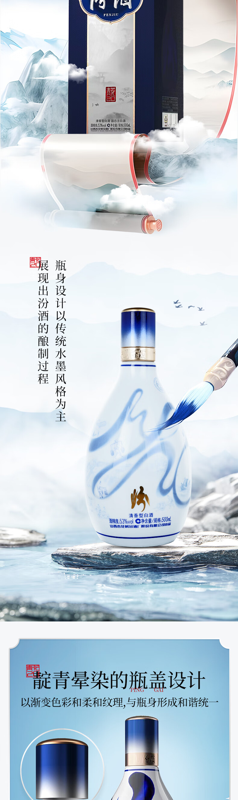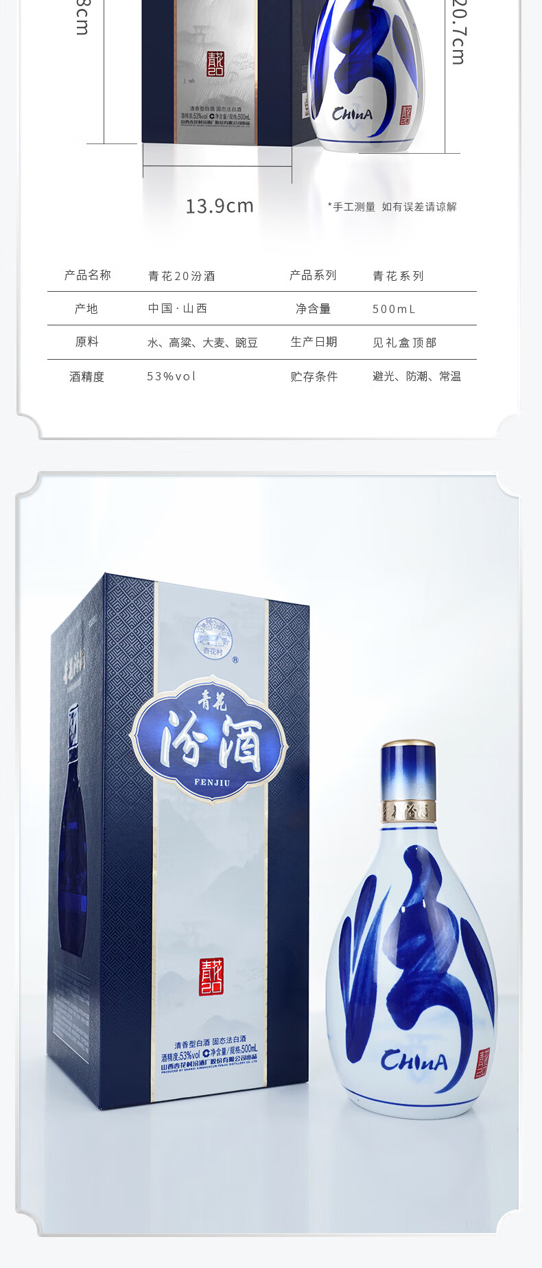汾酒 山西汾酒杏花村酒53度青花20 500mL 53%vol 500mL 1瓶